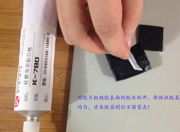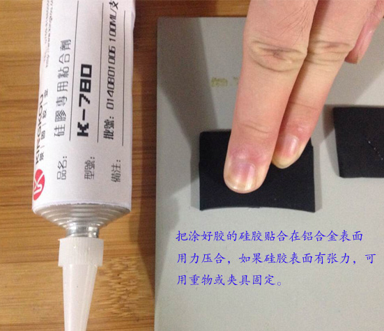 | 硅膠與金屬的粘接市面上比較常見(jiàn)有的硅膠粘不銹鋼、硅膠粘鋁合金這兩種,今天以硅膠和鋁合金的粘接來(lái)介紹一款膠水及具體的使用方法: K-780硅膠專用膠水 K-780硅膠專用膠水主要用于硅膠與塑料、金屬、玻璃、木材、皮革等材質(zhì)的粘接,膠水固化后是透明軟質(zhì)體,不會(huì)改變硅膠的軟韌性,強(qiáng)度可達(dá)到拉爛硅膠不會(huì)脫膠,該款膠水另一個(gè)優(yōu)點(diǎn)是可以耐260度高溫,適用于經(jīng)常處于高溫工作狀態(tài)的產(chǎn)品粘接。膠水通過(guò)歐盟ROHS環(huán)保認(rèn)證,符合出口標(biāo)準(zhǔn)! 硅膠粘鋁合金膠水K-780硅膠膠水使用方法: 1:把K-780硅膠膠水帽子擰開(kāi),把尖嘴導(dǎo)管裝在鋁管頂端,把膠水涂在硅膠表面 2:用硬膠片把硅膠上面的硅膠膠水刮開(kāi),保證膠層均勻,需要粘接的位置涂膠到位不留盲點(diǎn) 3:把涂好硅膠膠水的硅膠貼合在鋁合金表面,硅膠與鋁合金之間如果有張力,需要用重物或夾具固定 4:K-780為慢干型硅膠膠水,定位時(shí)間在15~30分鐘,完全固化需要24小時(shí),測(cè)試強(qiáng)度在24小時(shí)后進(jìn)行! |