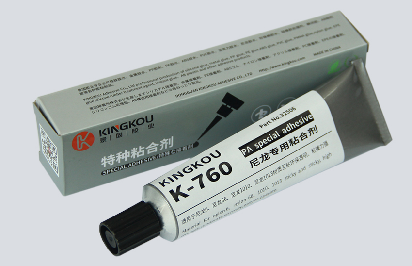 景固KINGKOU K-760尼龍專用膠水主要針對尼龍與尼龍之間粘接研發(fā),該膠水具有優(yōu)異的粘接牢度,柔韌性好,拉伸強度高,可室溫固化,耐水、耐磨、耐抗震、耐疲勞等眾多優(yōu)點,可達材破不脫膠的粘接效果。